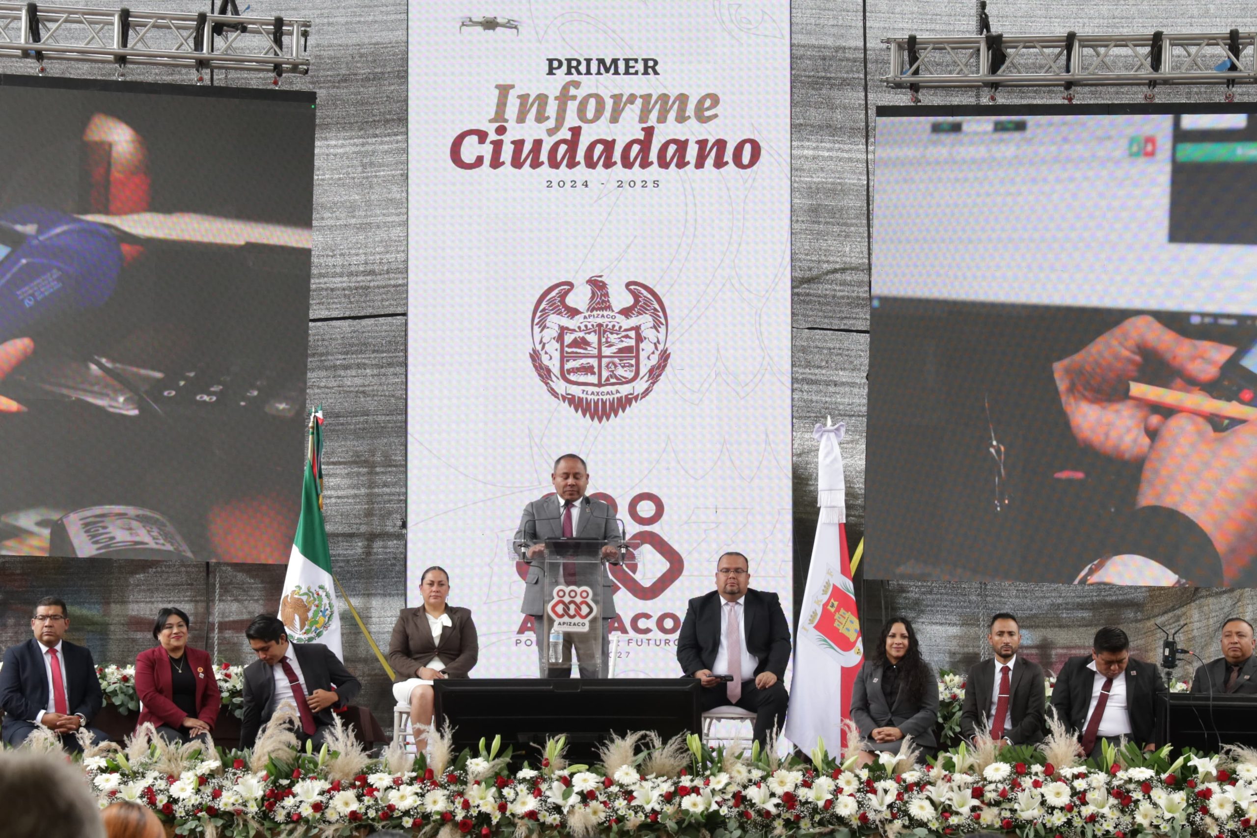 Esta mañana, el presidente municipal de Apizaco, Javier Rivera Bonilla, presentó su Primer Informe de Gobierno, en el que destacó los principales avances y acciones emprendidas durante su administración en beneficio de las y los apizaquenses.