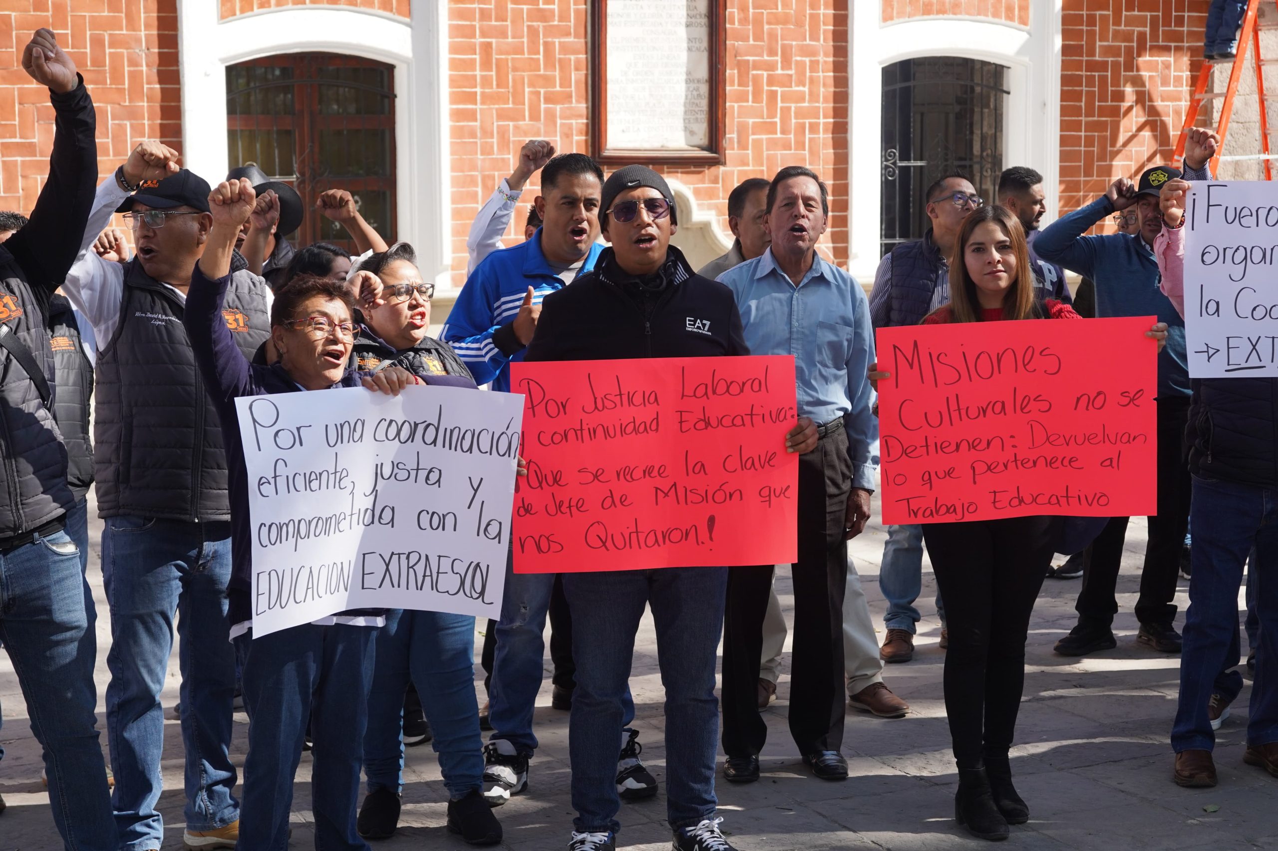La mañana de este martes, agremiados a la Sección 31 del SNTE, pertenecientes a los departamentos de Misiones Culturales y CEDEX, se manifestaron frente a Palacio de Gobierno para exigir la destitución de la coordinadora de Educación Extraescolar, Betzai Silva Arciniega, a quien señalan por presunto abuso de autoridad.