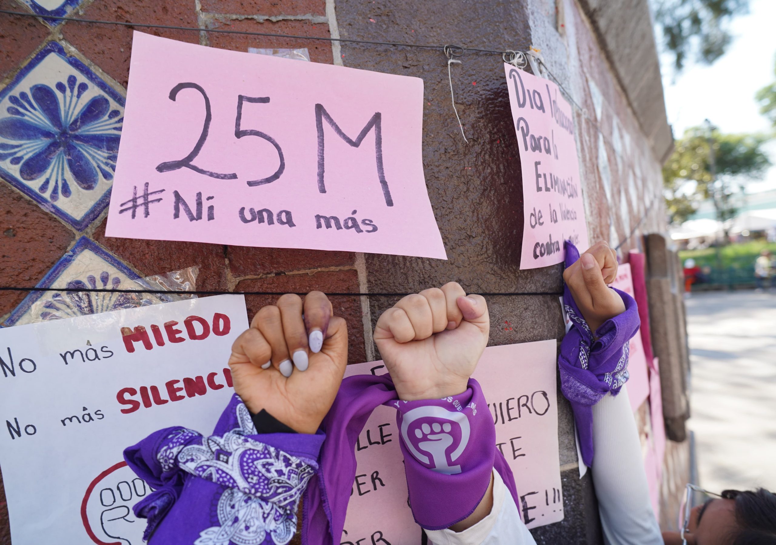 En el marco del Día Internacional de la Eliminación de la Violencia contra la Mujer, diversos colectivos feministas llevaron a cabo una actividad simbólica en el kiosko de la capital tlaxcalteca, con el propósito de visibilizar las distintas formas de agresión que enfrentan diariamente las mujeres,