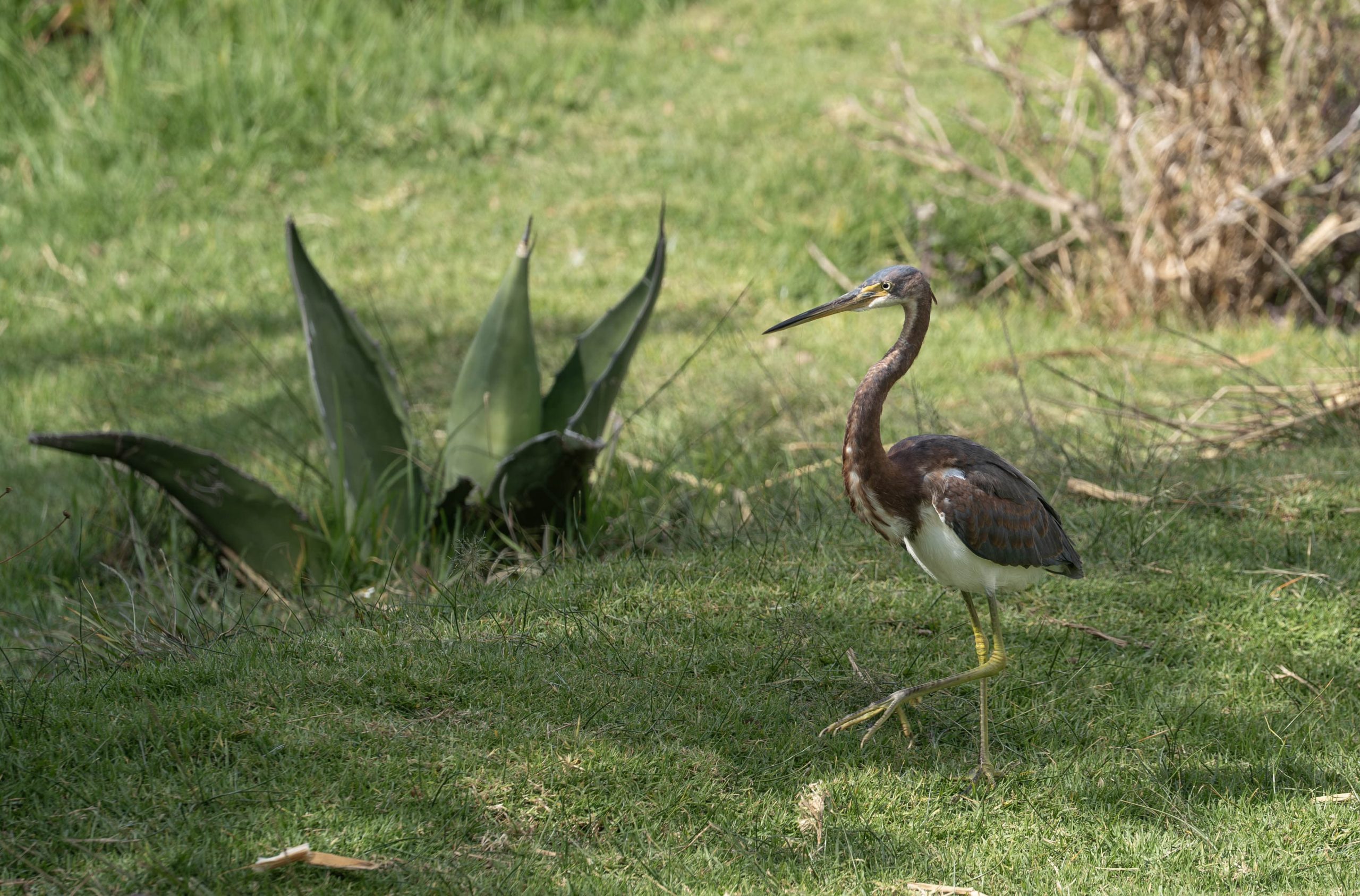 La garza tricolor es un ave de tamaño mediano reconocida por su plumaje tricolor: dorso gris azulado, cuello morado y vientre blanco, además de patas amarillas y un iris menta que se acentúa durante la época reproductiva.
