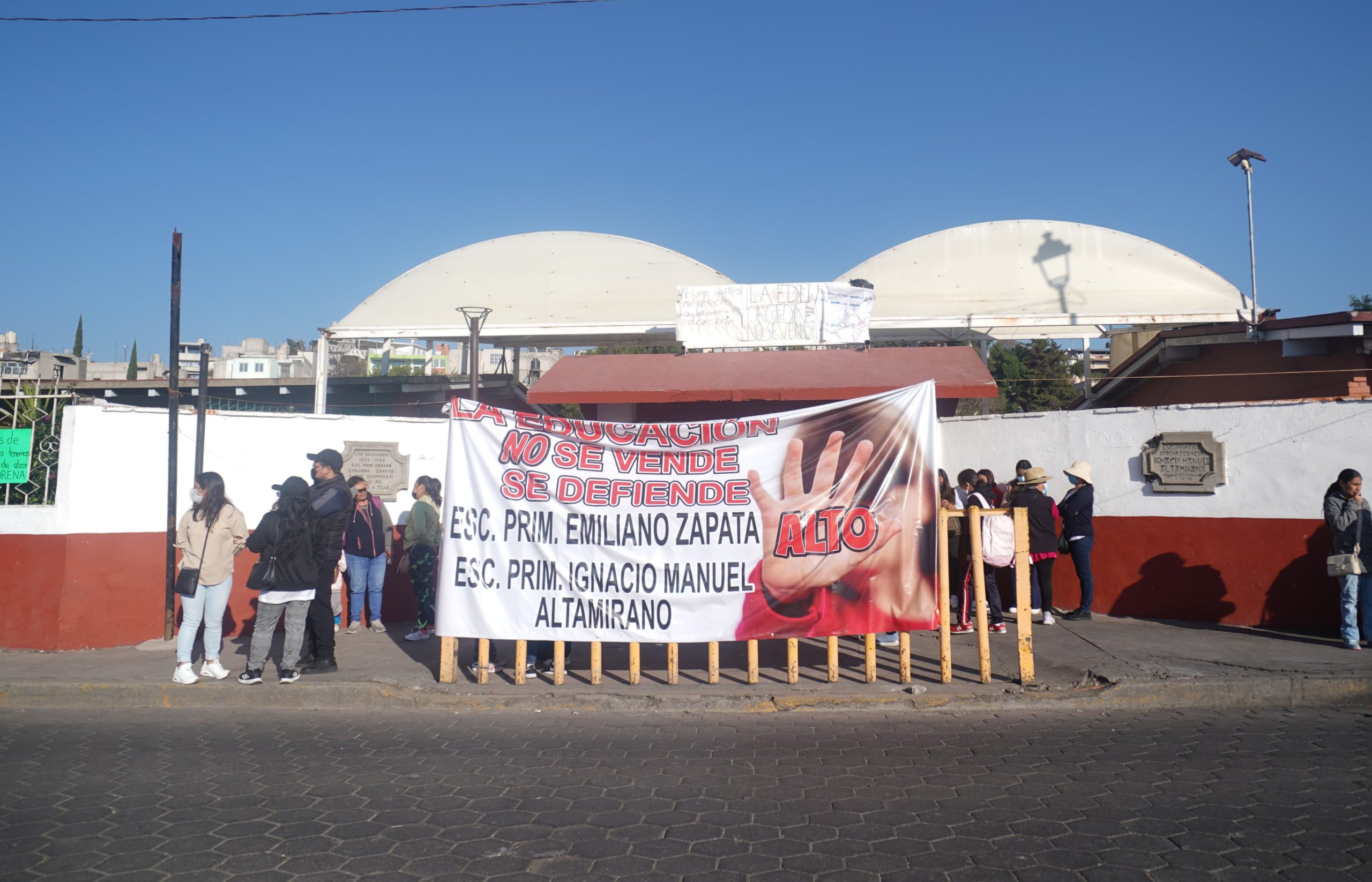Padres de familia de la escuela Emiliano Zapata realizan marcha pacífica por las principales calles de Tlaxcala en contra de la reubicación de la institución.
